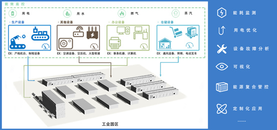 其后,在工厂能效管理系统中,我们不仅能够对工厂用能进行管理,也可衍生提供复合能源及储能智能管控,通过不同电价时段、用电、用水、用气预测,实现经济效益最大化;并部署适合工厂经济效益的动态方案,实现需求侧响应。同时,通过非侵入式负荷分析算法,进行设备使用情况的实时信息挖掘,实现设备异常监控及预测性维护。