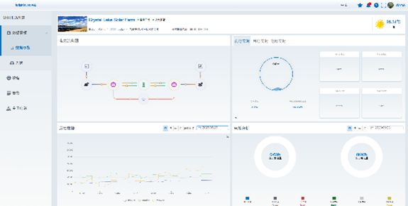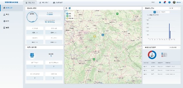 EMS系统与储能装置、电池管理系统、逆变器、光伏板等硬件进行实时信息的采集和处理,实时采集模拟量、开关量。大屏简洁直观地向用户展示集成的各类重要信息;整体发电情况以数据与图表显示,包括历史、累计、当前情况。电站及用户下辖设备状态也得到直观展现,包括是否出现故障告警等。