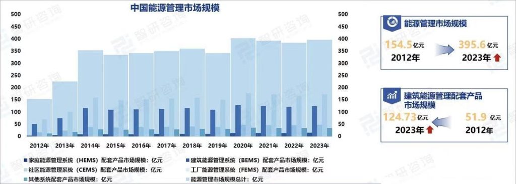 随着全球对能源效率的重视以及建筑行业的不断发展,建筑能源管理系统市场规模持续扩大。据统计,2023年我国建筑能源管理系统(BEMS)配套产品市场规模124.73亿元,同比其他三种能源管理系统,位居第二。