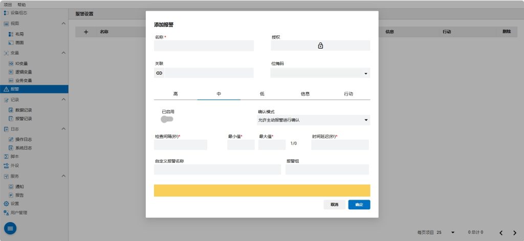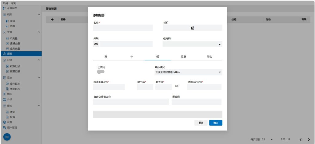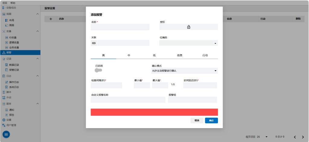 FX青鸾ApexSCADA系统提供完善的报警管理功能,支持数据点位关联和阈值设置,并通过延迟报警有效减少误报。系统采用高、中、低分级报警机制,分别以不同颜色标识报警严重程度。当报警触发时,系统会自动向预设责任人发送邮件通知,同时提供ACK确认状态跟踪功能,确保从报警触发到处理完成的闭环管理。