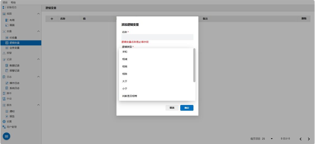 逻辑变量(如算术/比较/条件运算等):动态处理数据,实现自动化逻辑判断,并生成设备控制策略;