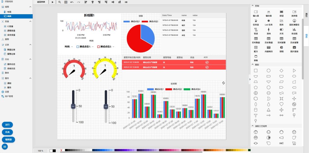 零代码配置:业务人员无需编程基础,通过拖拉拽组件即可完成HMI画面设计及相关配置